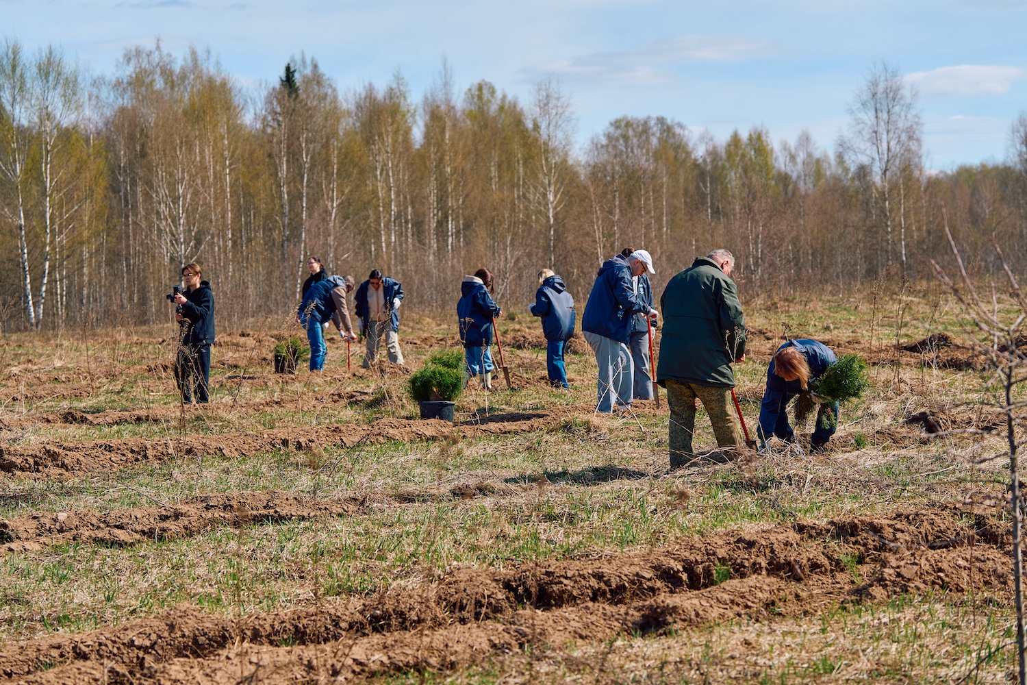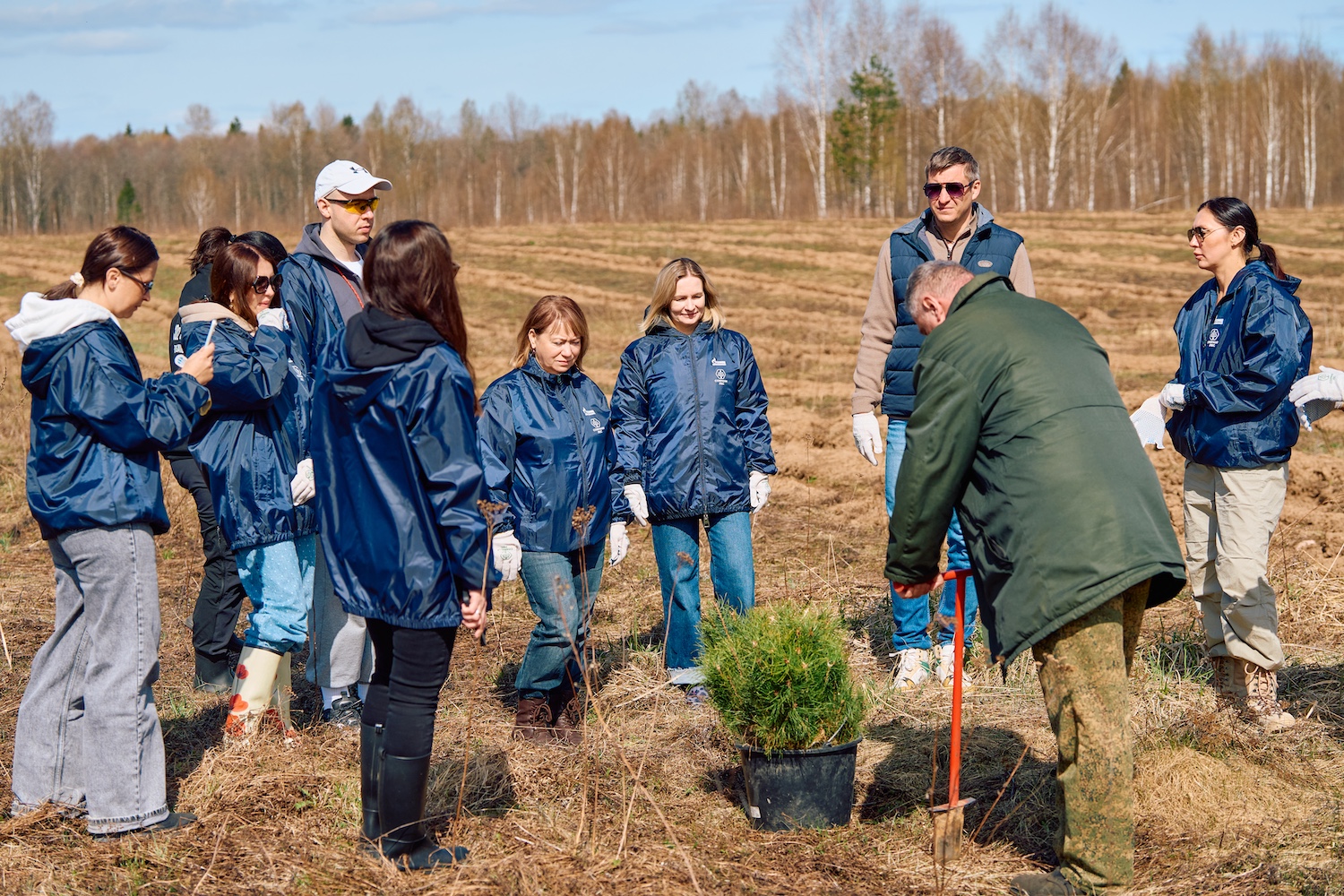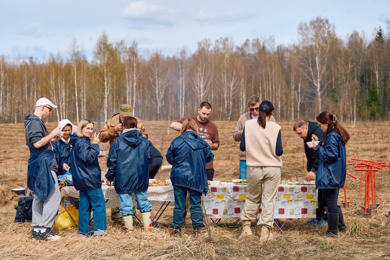 Утром второго дня после завтрака и общего сбора колонна участников двинулась к месту посадки. Инструктаж, дружный перекус прямо под открытым небом — и работа закипела. Несколько часов совместного труда, лопаты в руках и ряды молодых сосенок, уходящие вдаль. Завершив посадку, группа пообедала прямо на делянке, а затем отправилась в обратный путь в Москву.