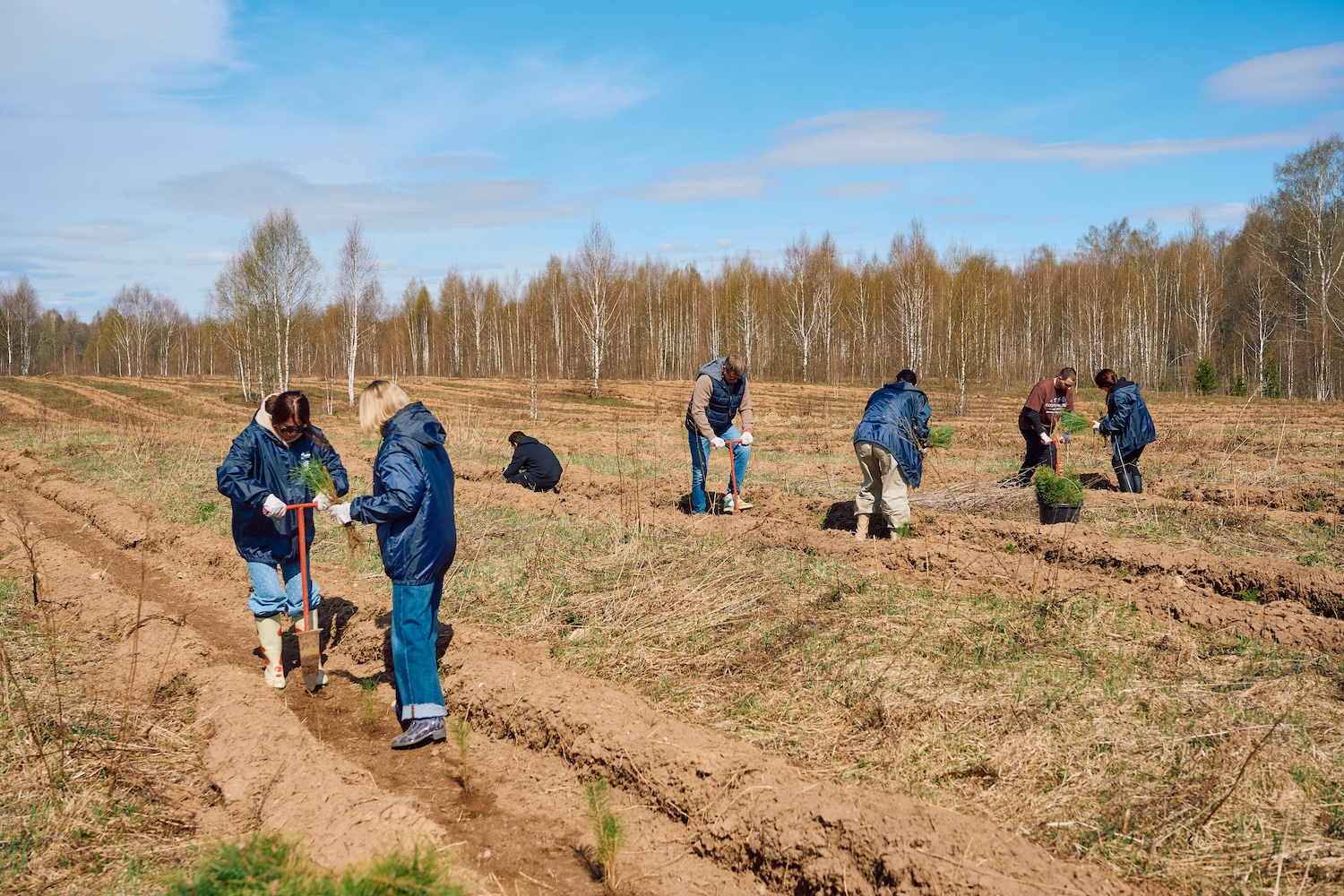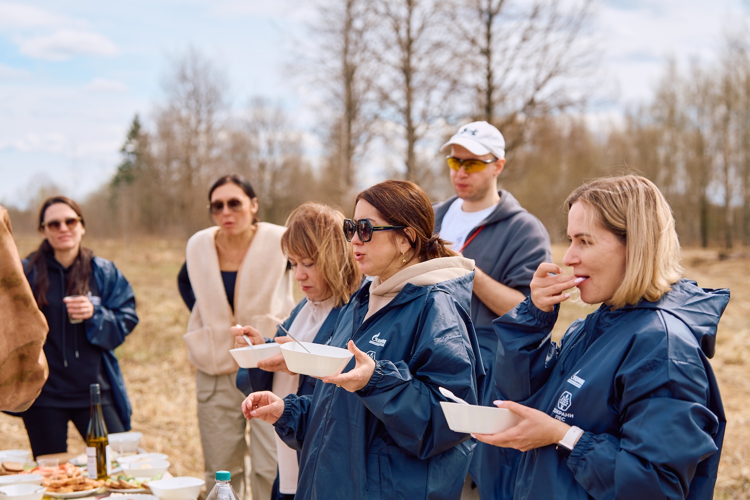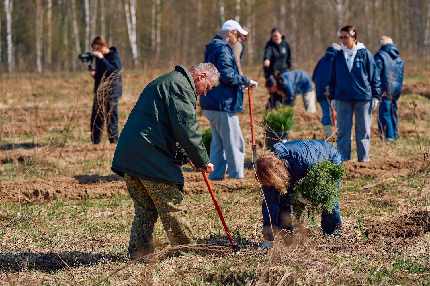 Утром второго дня после завтрака и общего сбора колонна участников двинулась к месту посадки. Инструктаж, дружный перекус прямо под открытым небом — и работа закипела. Несколько часов совместного труда, лопаты в руках и ряды молодых сосенок, уходящие вдаль. Завершив посадку, группа пообедала прямо на делянке, а затем отправилась в обратный путь в Москву.
