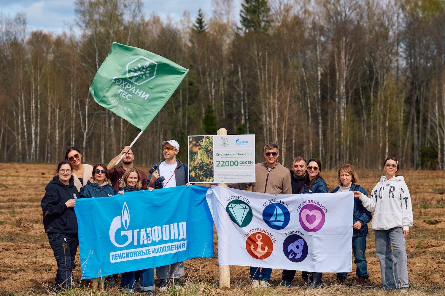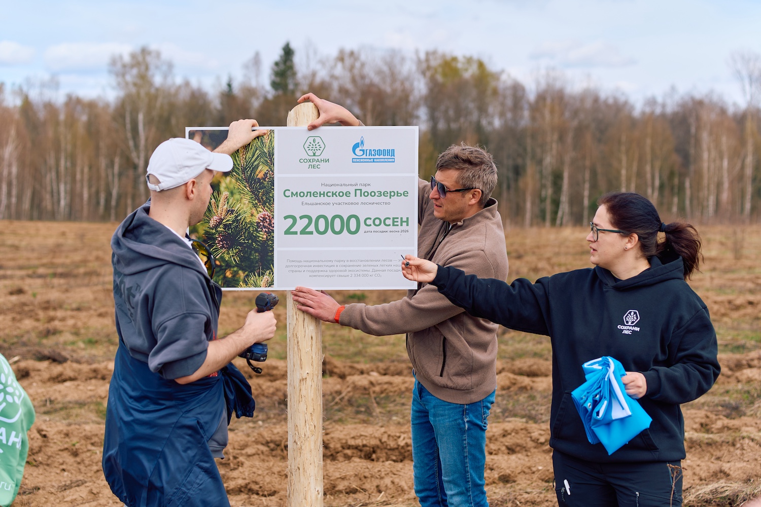 24–25 апреля 2026 года команда НПФ ГАЗФОНД пенсионные накопления вернулись в национальный парк «Смоленское Поозерье» — и на этот раз были высажены 22 000 саженцев сосны.